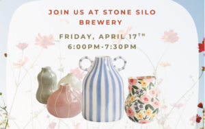 Come to Stone Silo on April 17 from 6:00–7:30 PM for a cozy evening of painting your own bud vase. Each vase is handmade and no two are alike. You’ll get to paint a sweet little vase to take home, and your ticket also includes a drink plus flowers during pick up. Fun to fill your new pottery piece with something pretty. It’s the perfect chance to relax, get creative, and leave with something cute and handmade.